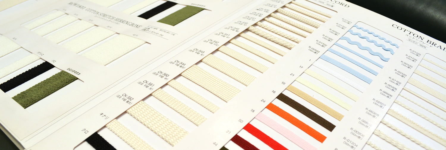 株式会社カワナではバッグ・靴・服飾等に使うテープやファッションテープ、コード、ストレッチ、などの副資材を豊富に取り扱っております。
