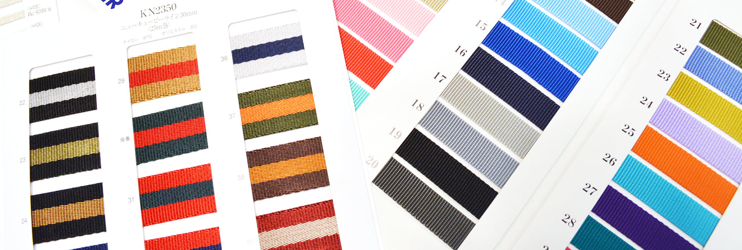 株式会社カワナではバッグ・靴・服飾等に使うテープやファッションテープ、コード、ストレッチ、などの副資材を豊富に取り扱っております。