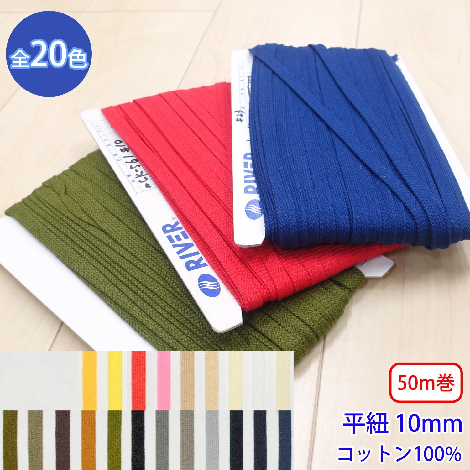 【50m巻】グロッシーコード / CK-561 平紐 石目 発色の良いカラーコード コットン100%(幅約10mm) (入園・入学準備に、靴紐・パーカーや巾着などちょっとしたバッグに)
