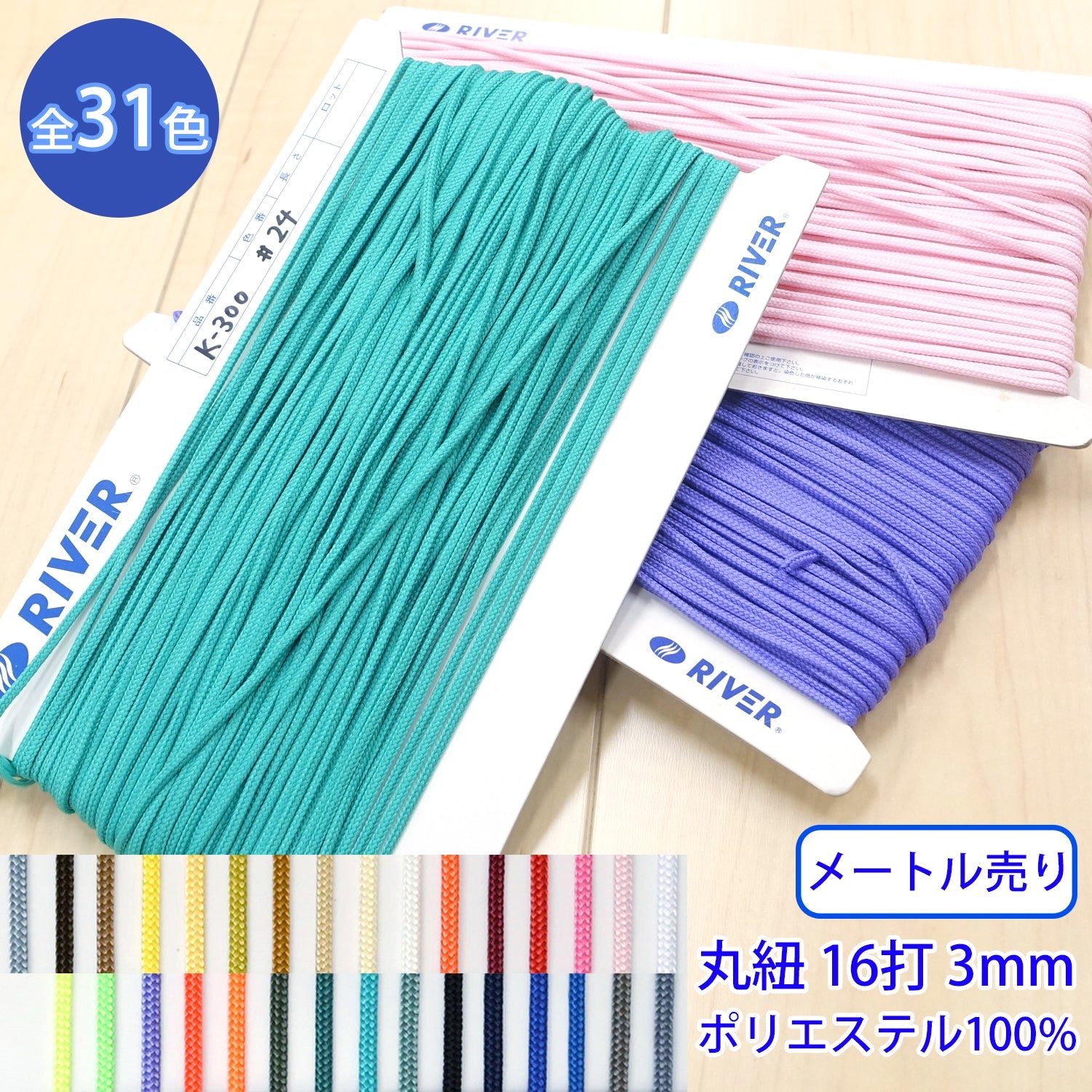 【メートル売り】 先染めポリエステルコード / K-300 丸紐 16打 光沢のあるカラーコード ポリエステル100%(外径約3mm) (スポーツ系、靴紐・パーカーや巾着などちょっとしたバッグに)