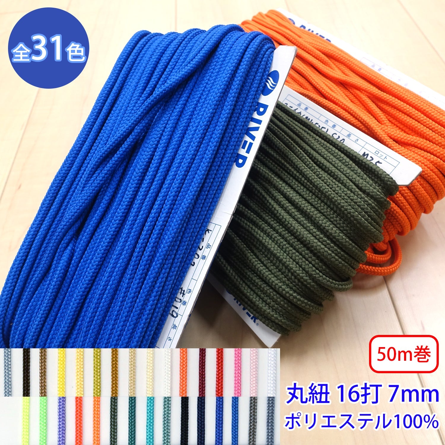【50m巻】先染めポリエステルコード / K-302 丸紐 16打 光沢のあるカラーコード ポリエステル100%(外径約7mm) (スポーツ系、靴紐・パーカーや巾着などちょっとしたバッグに)