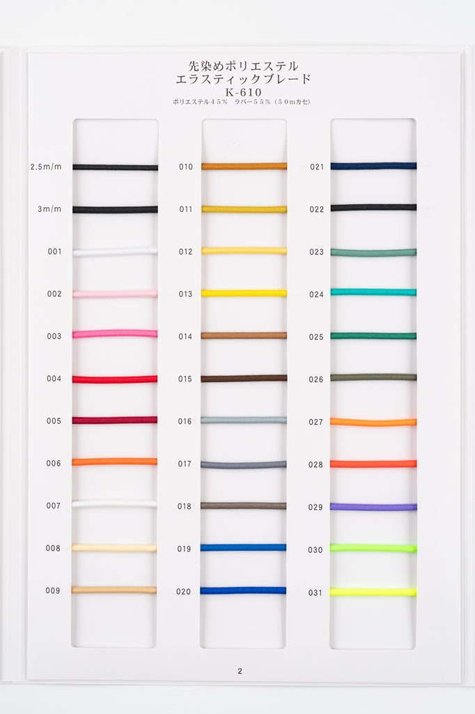 【メートル売り】 先染めポリエステル エラステックブレード / K-610 丸ゴム(外径約3mm) (入園・入学準備に、ズボンや運動着、ヘアゴムに)