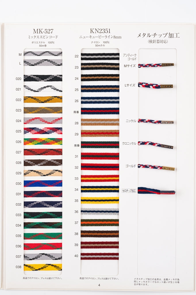【50m巻】ニューキュービーライン / KN2351 平紐 朱子織 光沢のあるストライプコード ナイロン100%(厚さ2mm x 幅8mm) (高級感のある紐、入園・入学準備に、靴紐・パーカーや巾着などちょっとしたバッグに)