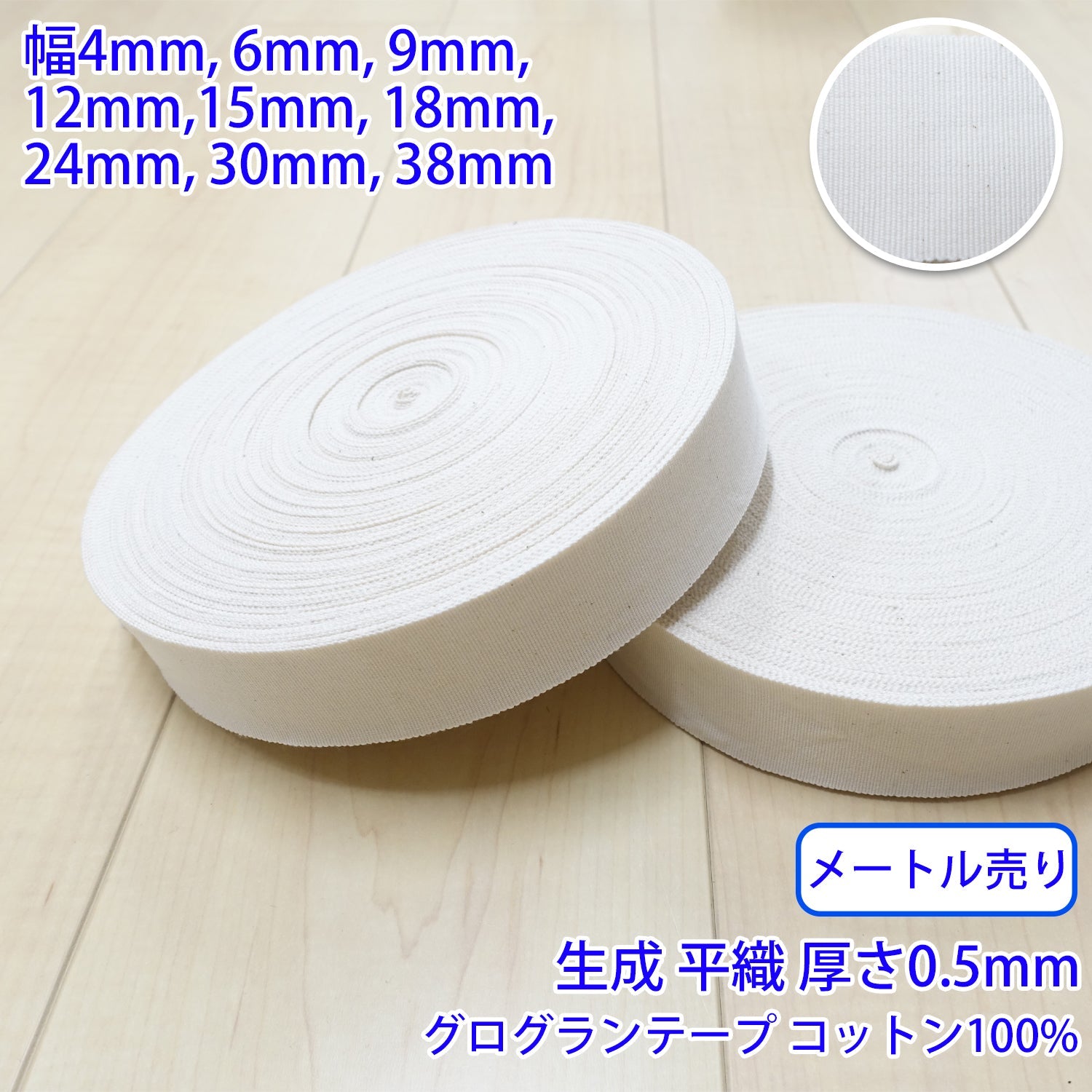 【メートル売り】 コットングログランテープ / NO1808 平織 生成 コットン100%(厚さ約0.5mm) (入園・入学準備に、バッグの持ち手として、洋服のワンポイントに)