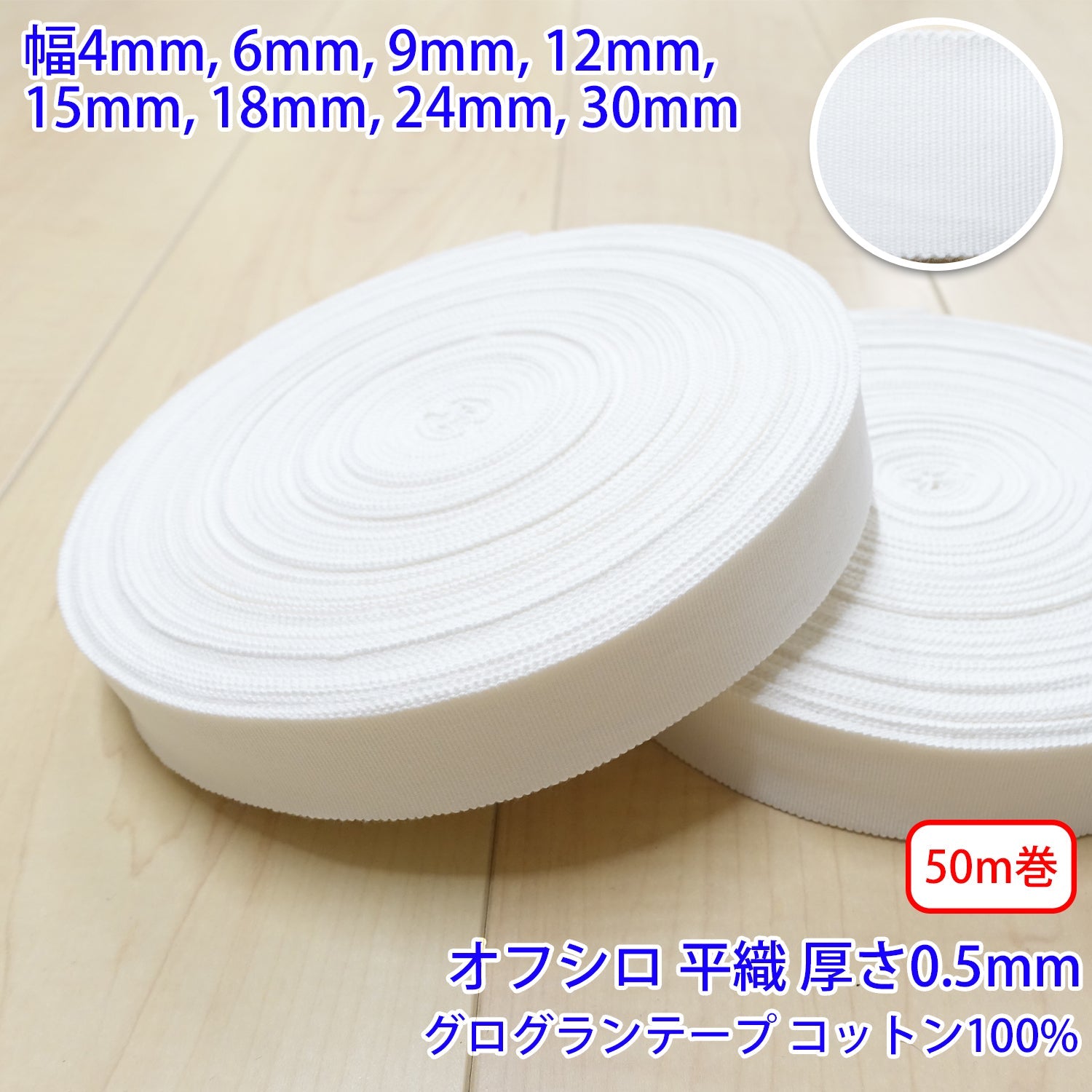 【50m巻】コットングログランテープ / NO1808 平織 オフシロ コットン100%(厚さ約0.5mm) (入園・入学準備に、バッグの持ち手として、洋服のワンポイントに)