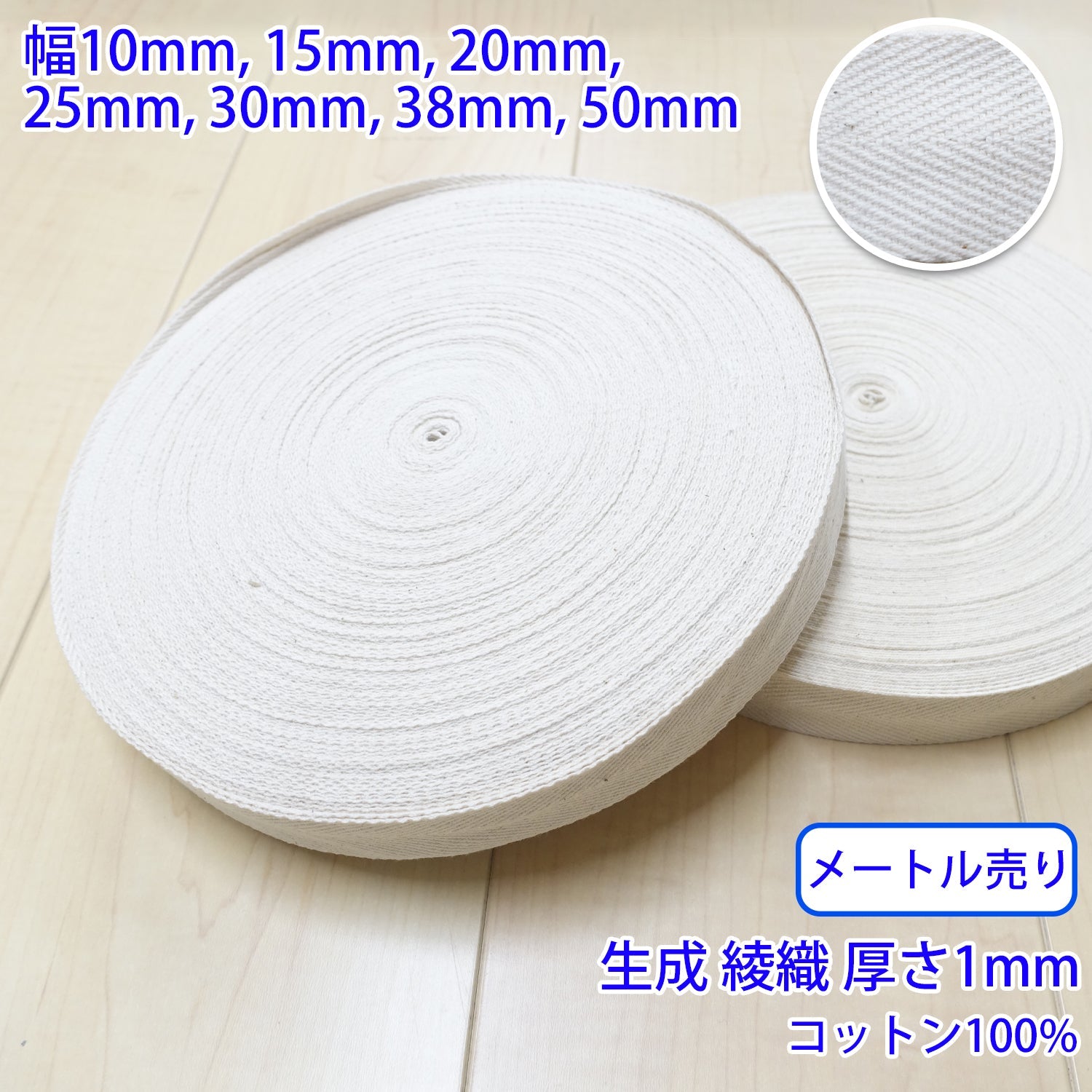 【メートル売り】 ヘリンボーン / NO1902 綾織 生成 コットン100%(厚さ約1mm) (入園・入学準備に、バッグの持ち手として、洋服のワンポイントに)