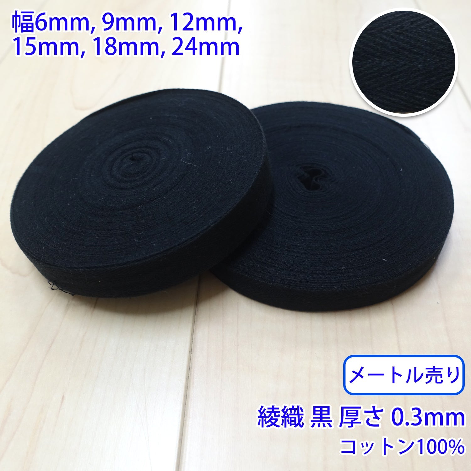 【メートル売り】 ヘリンボーン / NO5502 綾織 黒 コットン100%(厚さ約0.3mm) (入園・入学準備に、バッグの持ち手として、洋服のワンポイントに)