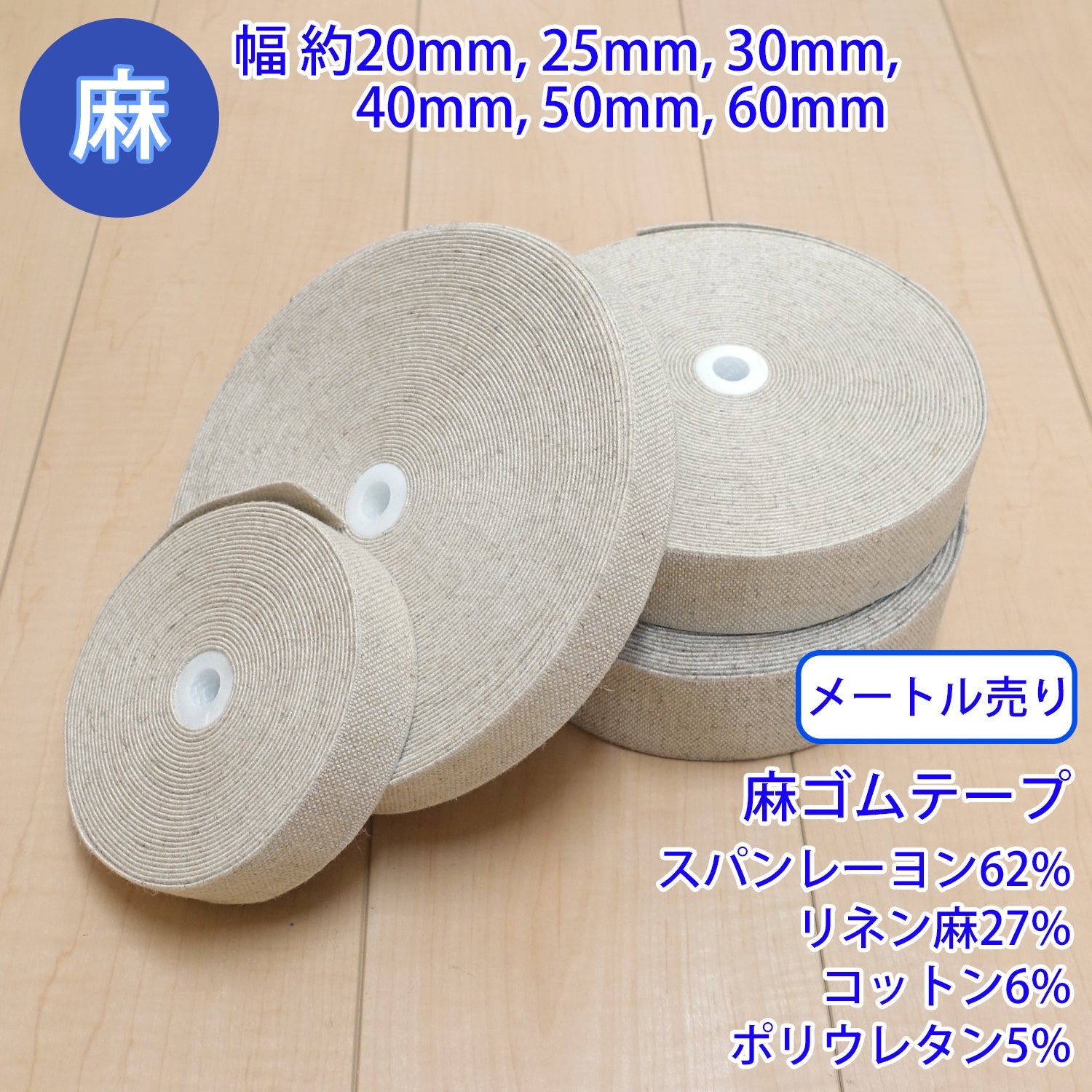 【メートル売り】麻シリーズ / NO.5505-108 麻ゴムテープ 幅約50mm (ナチュラル系のアイテムに、ワンポイントのアクセントに)