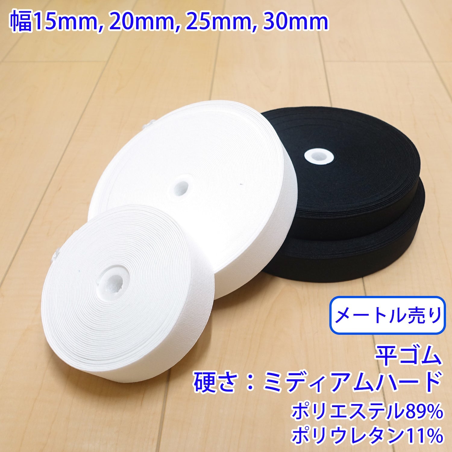 【メートル売り】 オペロンハードタック / PW3000 平ゴム 硬さ:ミディアムハード (入園・入学準備に、ズボンや運動着の裾・袖ゴムに)