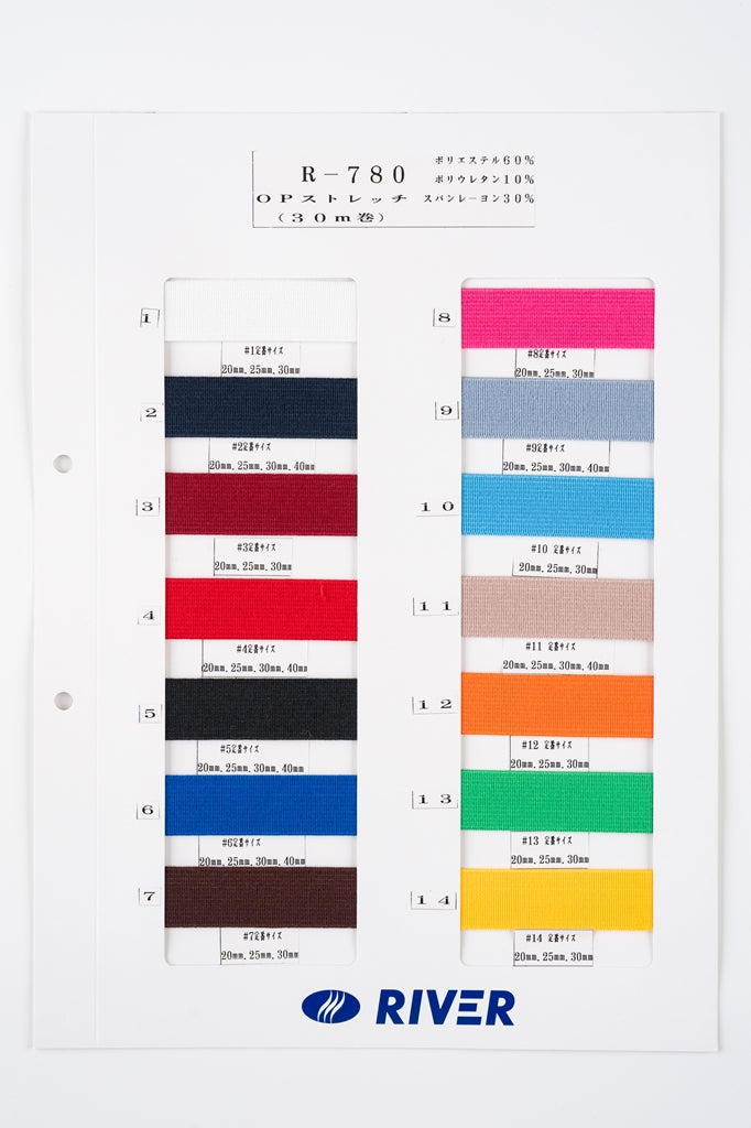 【メートル売り】 OPストレッチ / R-780 厚地平ゴム 硬さ:ミディアムハード(幅30mm) (入園・入学準備に、ズボンや運動着の裾・袖ゴムに)