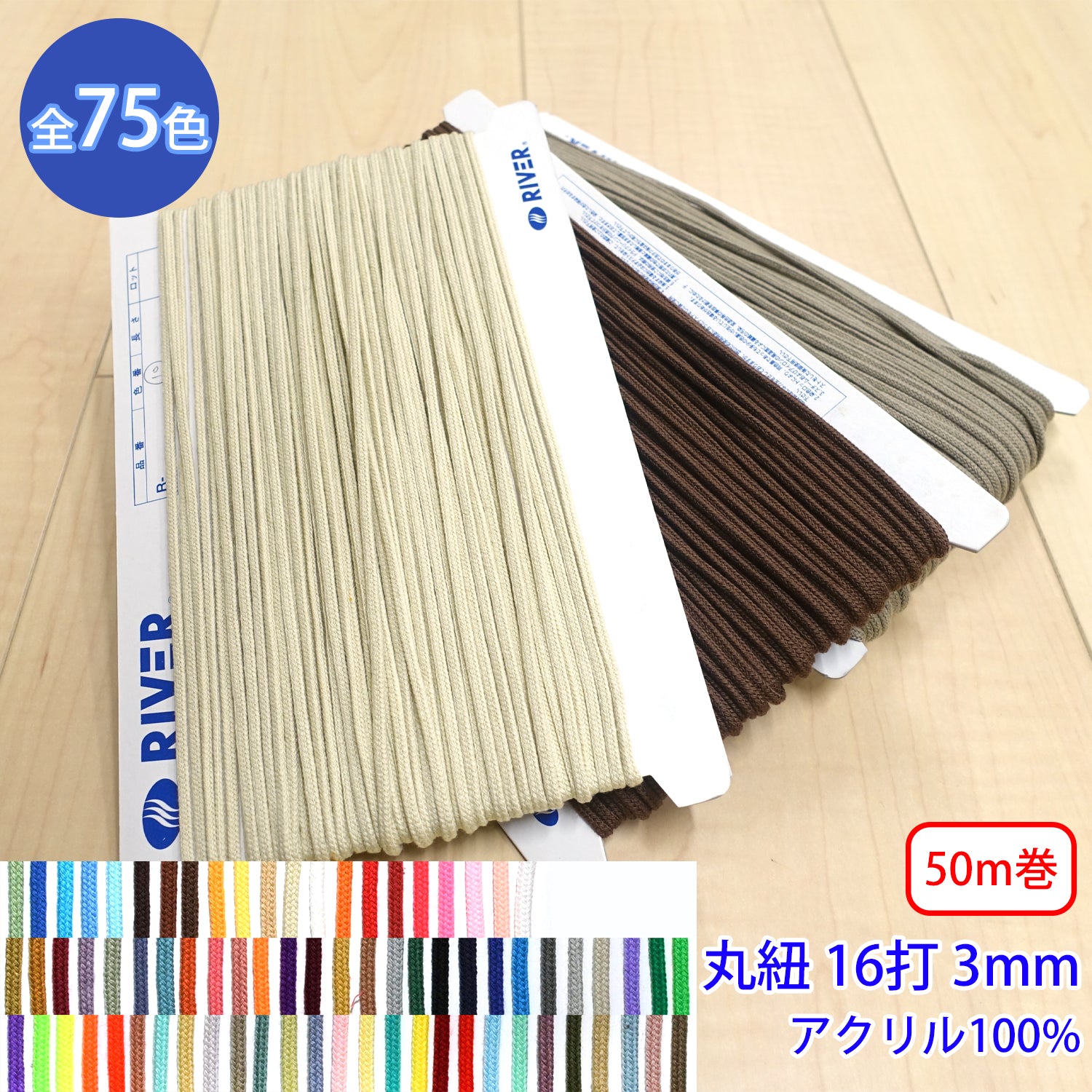 【50m巻】Rカラースピンドル カラーバリエーション豊富な丸紐 16打 アクリル100% (細 外径3mm) (入園・入学準備に、靴紐・パーカーや巾着などちょっとしたバッグに)