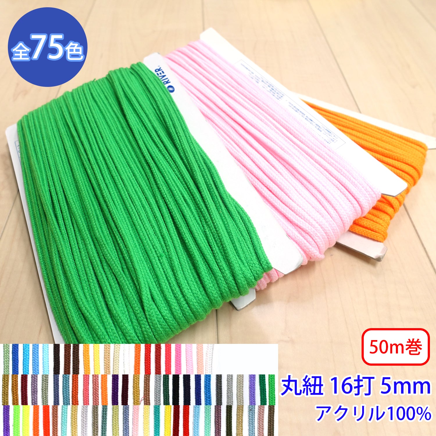 【50m巻】Rカラースピンドル カラーバリエーション豊富な丸紐 16打 アクリル100% (中 外径5mm) (入園・入学準備に、靴紐・パーカーや巾着などちょっとしたバッグに)