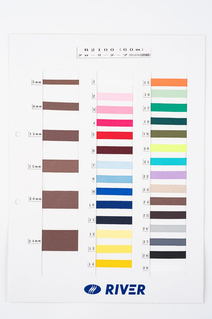 【メートル売り】 グローリーテープ / R2100 グログラン織 光沢のあるカラーテープ ポリエステル100%(幅15mm x 厚さ0.3mm) (入園・入学準備に、バッグの持ち手として、洋服のワンポイントに)