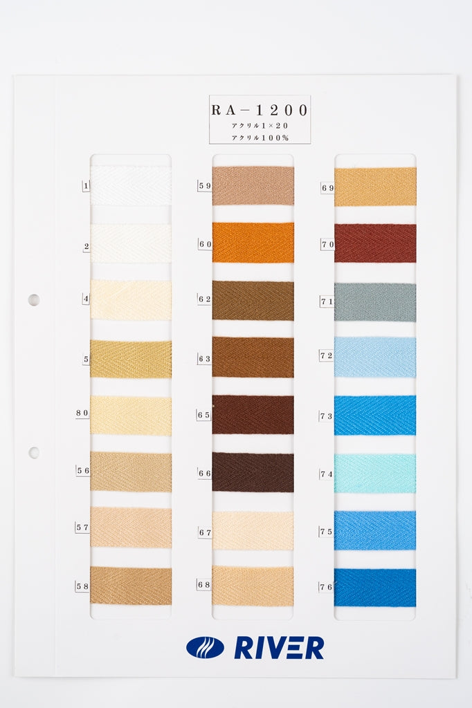 【50m巻】アクリルカラーテープ / RA-1200 綾織 アクリル100%(厚さ1mm x 幅20mm) (入園・入学準備に、バッグの持ち手として、洋服のワンポイントに)