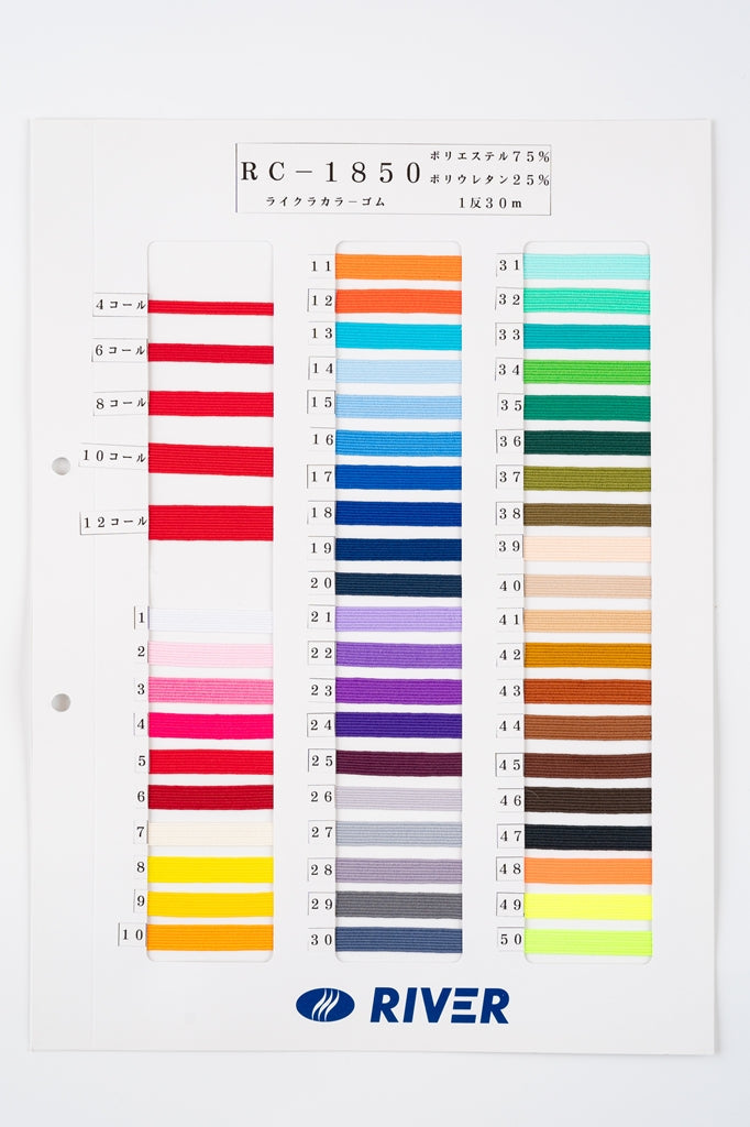 【メートル売り】 ライクラカラーゴム / RC-1850 平ゴム コール織 硬さ:ミディアム(4コール) (入園・入学準備に、ズボンや運動着の裾・袖ゴムに)