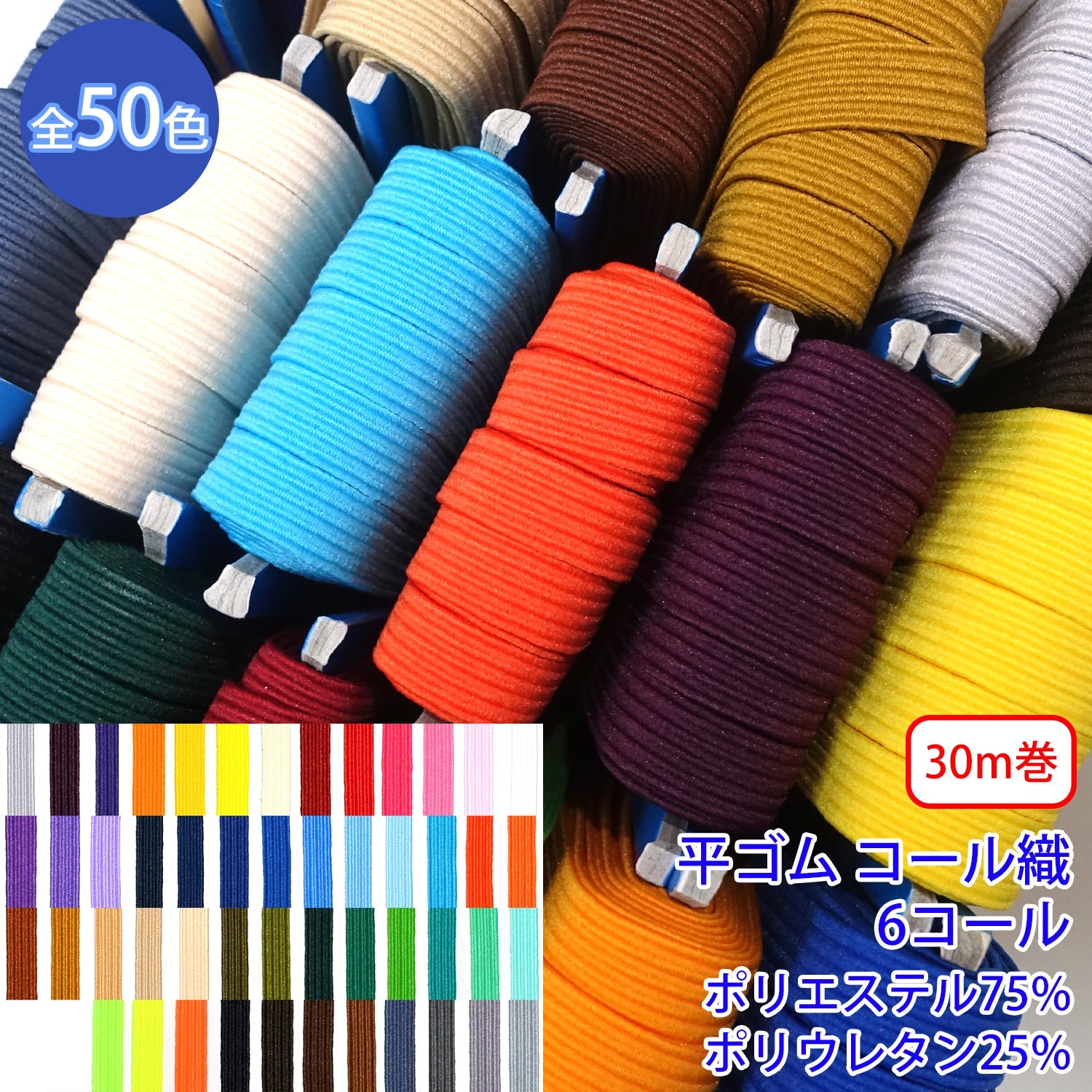 【30m巻】ライクラカラーゴム / RC-1850 平ゴム コール織(6コール) (入園・入学準備に、ズボンや運動着の裾・袖ゴムに)