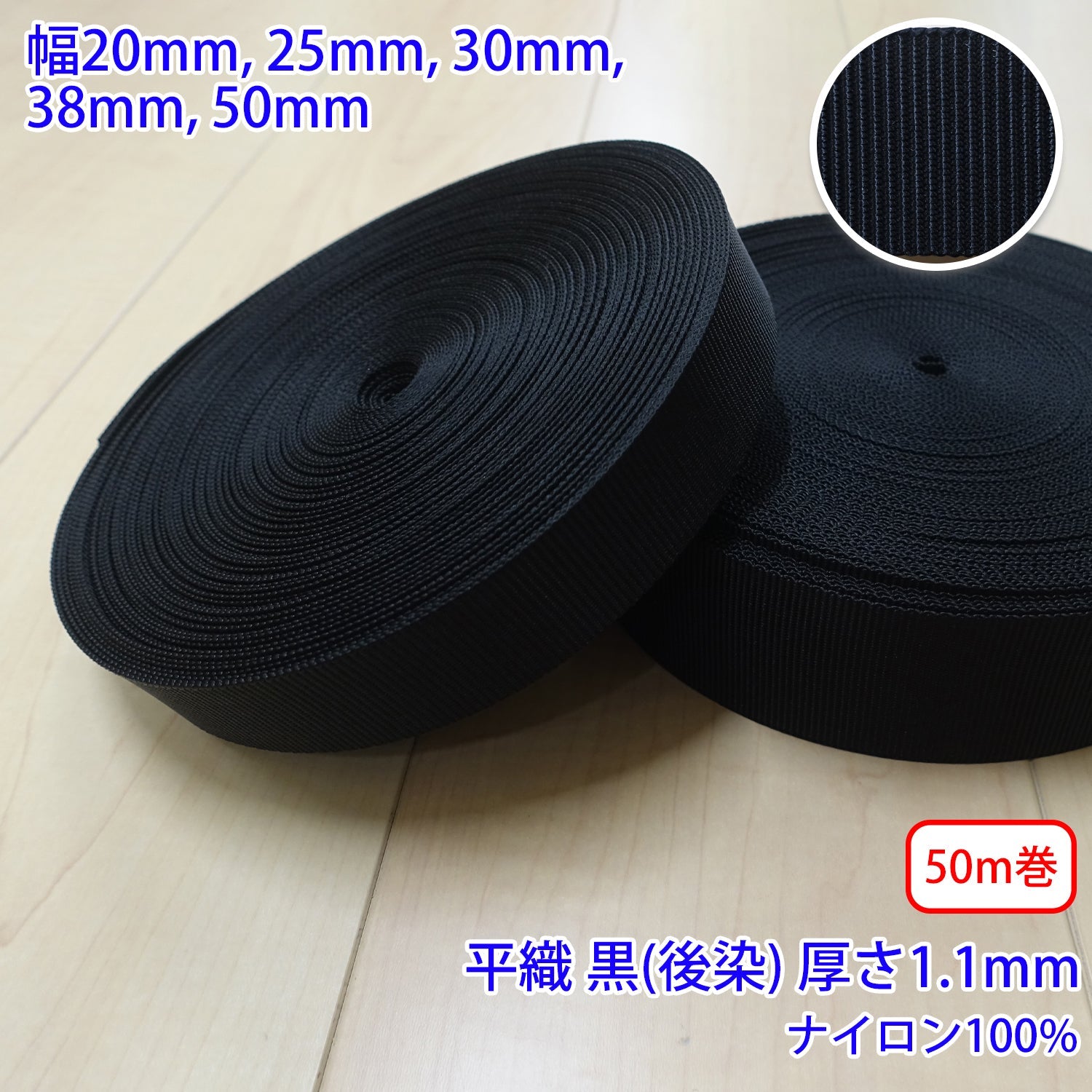 【50m巻】RNテープ / RN2013 平織 黒(後染) ナイロン100%(厚さ約1.1mm) (入園・入学準備に、バッグの持ち手として、ワンポイントに)