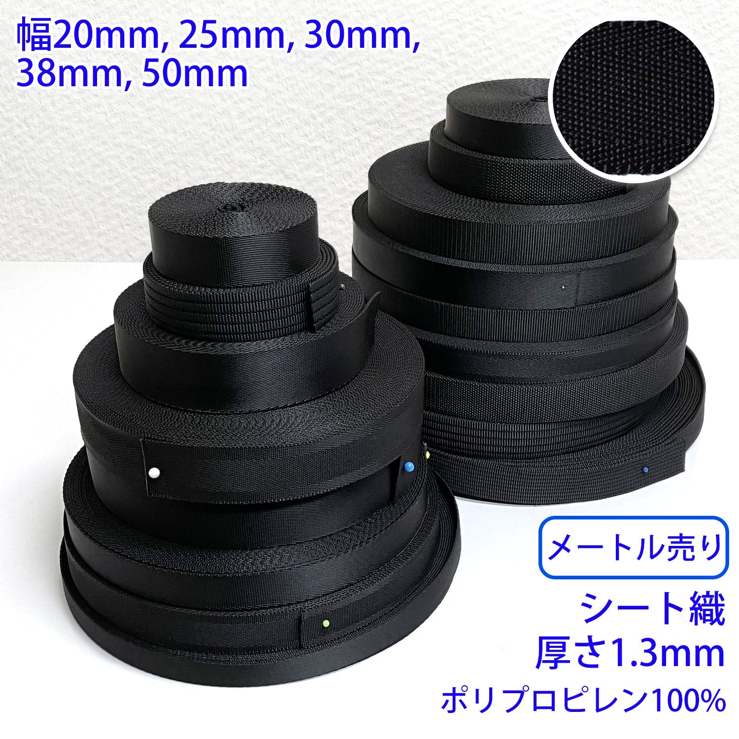 【メートル売り】 RPブラックシリーズ シート織 黒 ポリプロピレン100%(厚さ1.3mm) (入園・入学準備に、バッグの持ち手として、ワンポイントに)