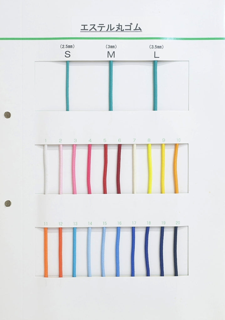 【50m巻】エステル丸ゴム 硬さ:ミディアム Lサイズ (直径約3.5mm) ポリエステル60% ポリウレタン40% (入園・入学準備に、ズボンや運動着の裾・袖ゴムに)