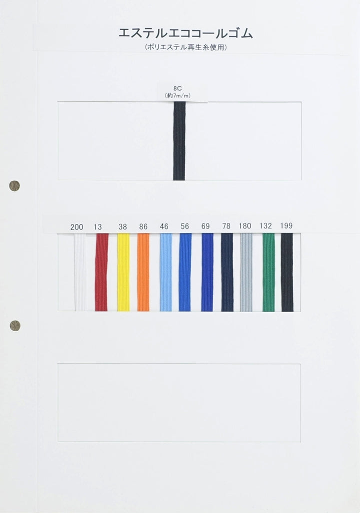 【300m巻】エステルエココールゴム 硬さ:ソフト (幅約7mm) ポリエステル75% ポリウレタン25% (入園・入学準備に、ズボンや運動着の裾・袖ゴムに)